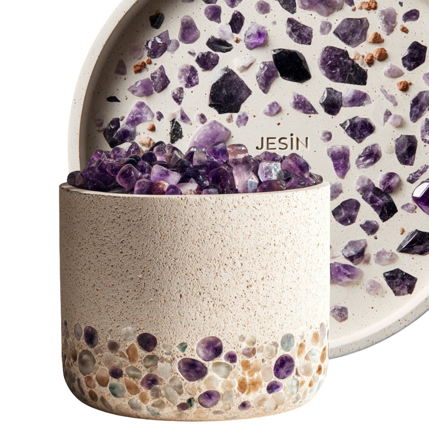 Entdecke die exklusive GEMAZZO Kollektion von COLORBERRY – die perfekte Verbindung aus JESIN Gießpulver, edlen Trommelsteinen im Terrazzo-Look, hochwertigen Silikonformen und dem praktischen Tools-Setfür deine kreativen DIY-Projekte. Ob Amethyst, Clear Quartz, Rose Quartz oder Jade – mit den GEMAZZO SoulStones bringst du natürliche Schönheit und einen Hauch von Luxus in jedes gegossene Home-Decor-Objekt.